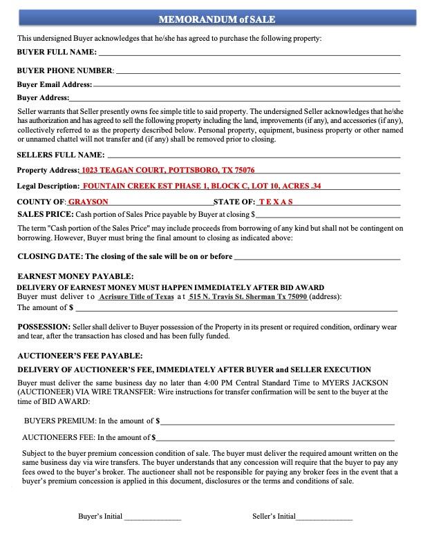 TEXT: “1023 Teagan Ct Auction Info”