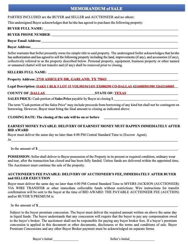 TEXT: “2710 Ashglen Dr Auction Info”