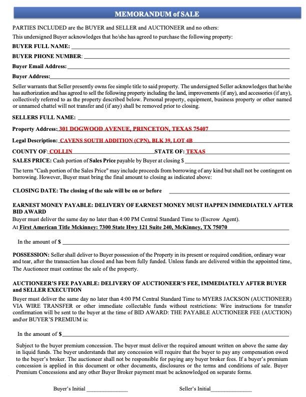301 Dogwood Avenue, Princeton TX 75407 Real Estate Auction is a North Texas area popular for prime residential property near Dallas… The real estate auction will take place via a competitive online bidding mechanism, subject to the auctioneer’s announcement and seller confirmation. Interested parties are encouraged to review all auction materials and complete bidder registration ahead of placing a bid. The terms and conditions of the published auction govern the sale.